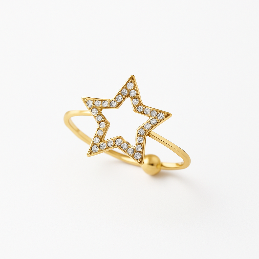 Anello sottile con stella pavè vuota.