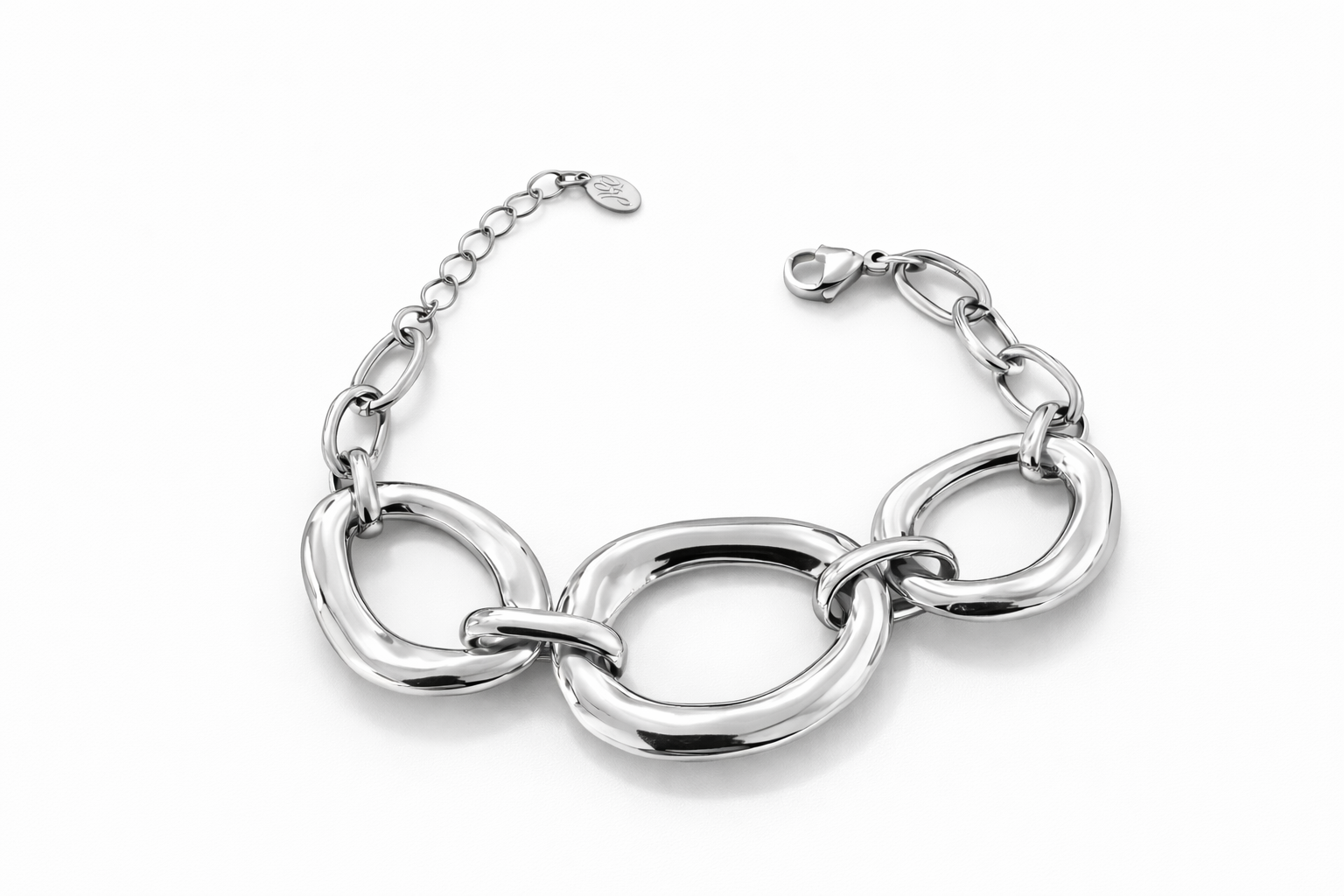 Bracciale con maglia ovale e catena.