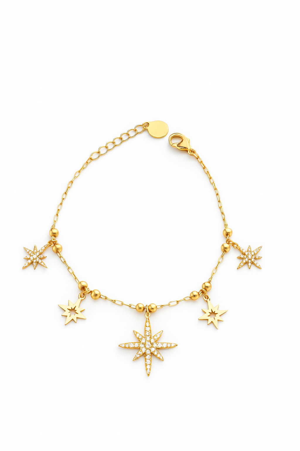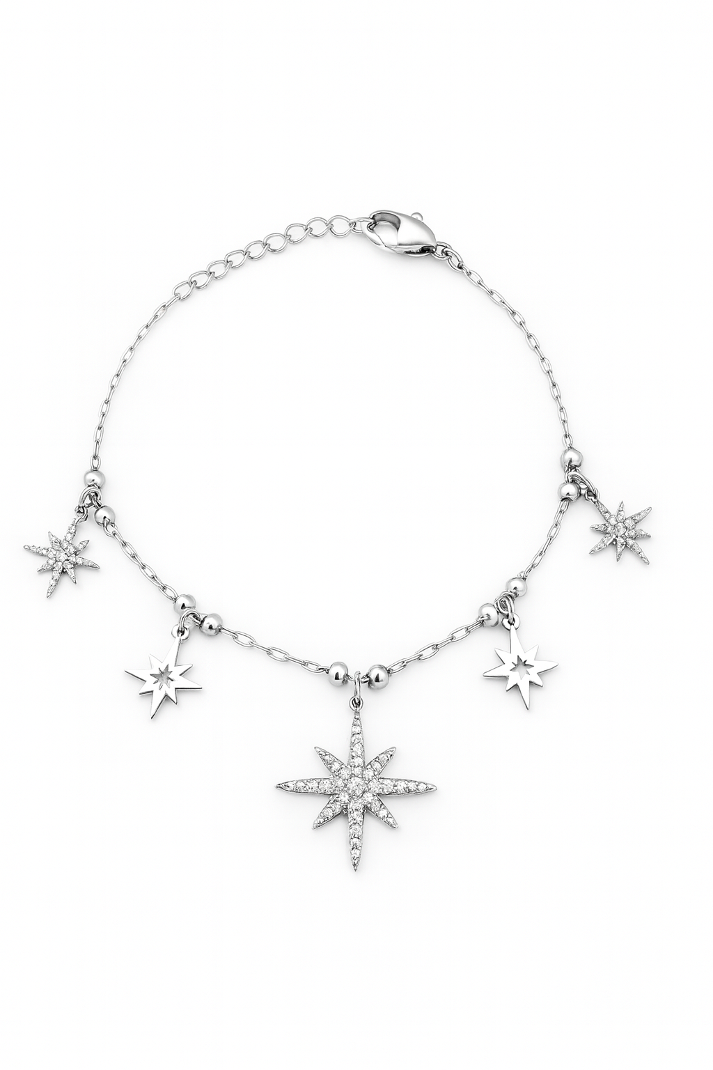 Bracciale catena con stelle nordiche lisce e zirconate.