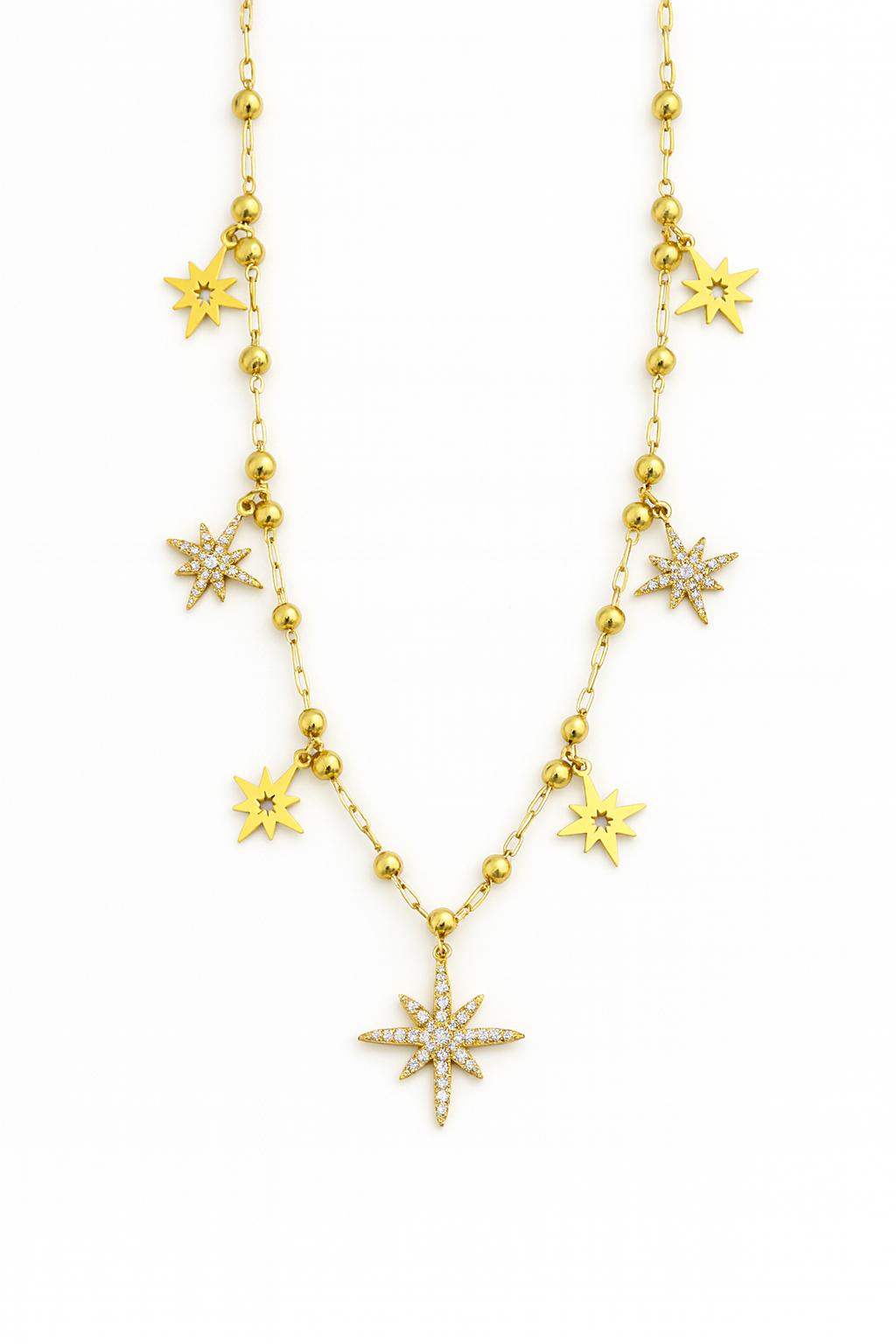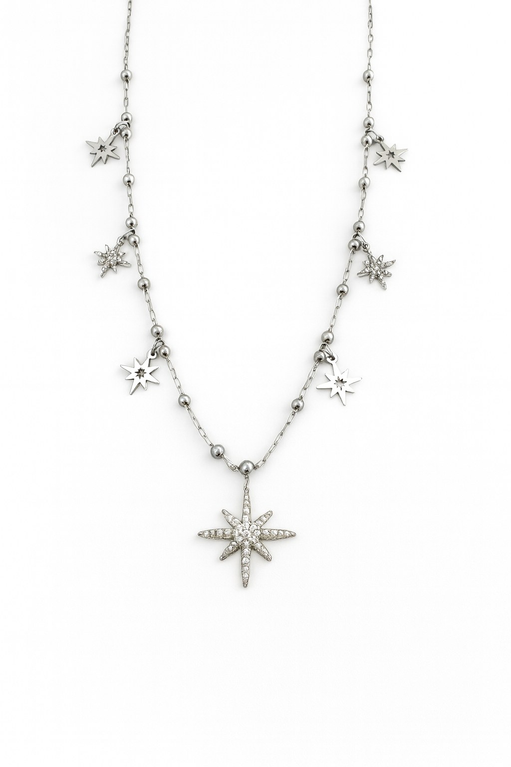 Collana base catena con ciondoli a stella nordica alternati lisci e zirconati.