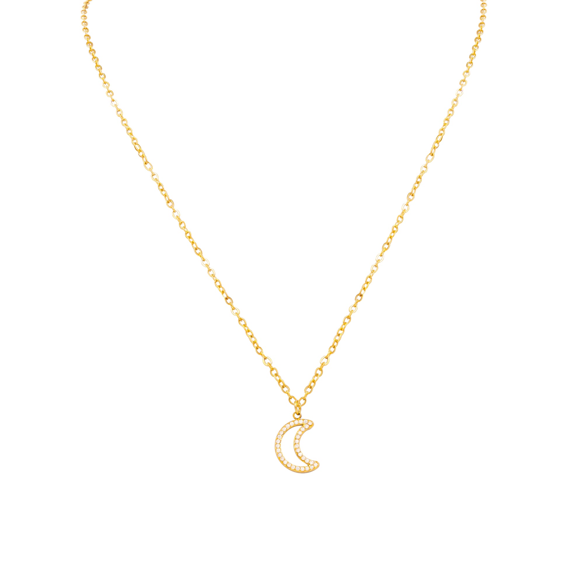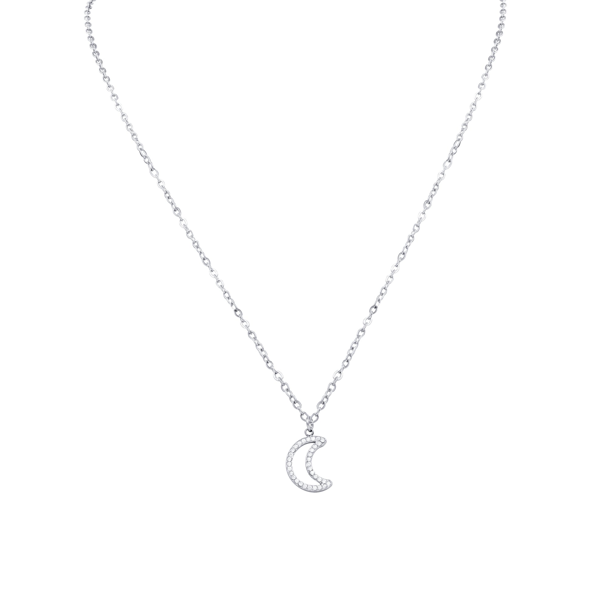 Collana base forzatina con ciondolo a luna vuota e zirconi,chiusura a moschettone regolabile.