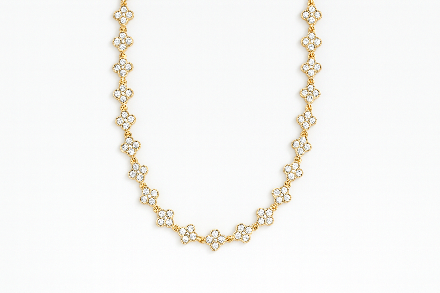 Collana base tennis con zirconi a fiori.