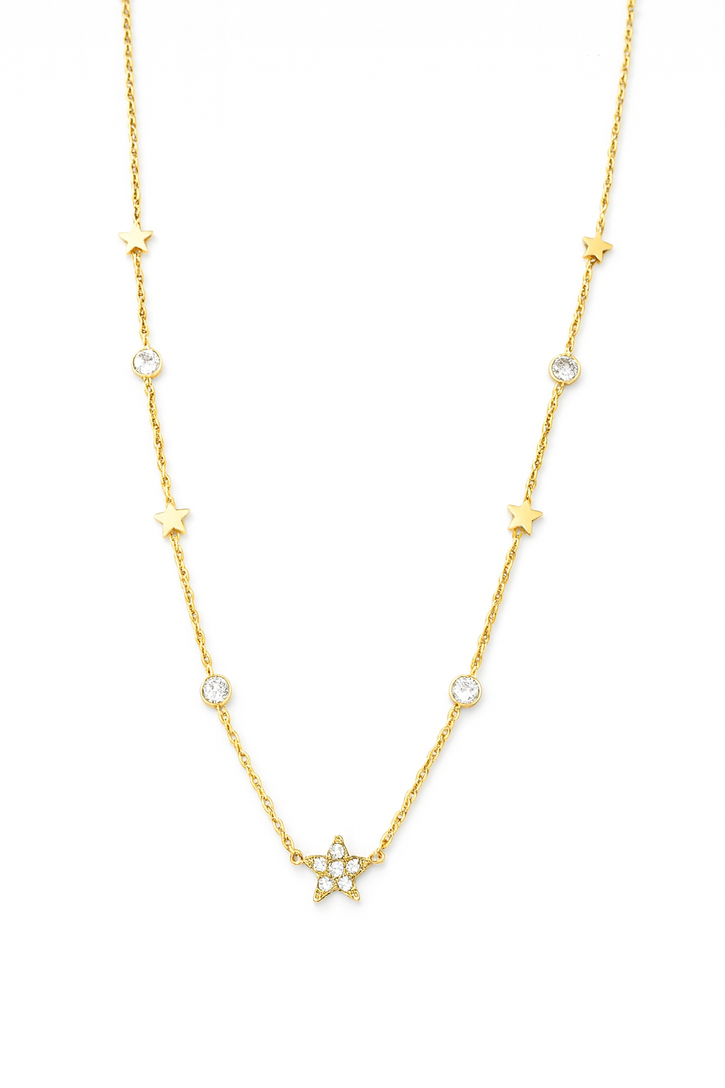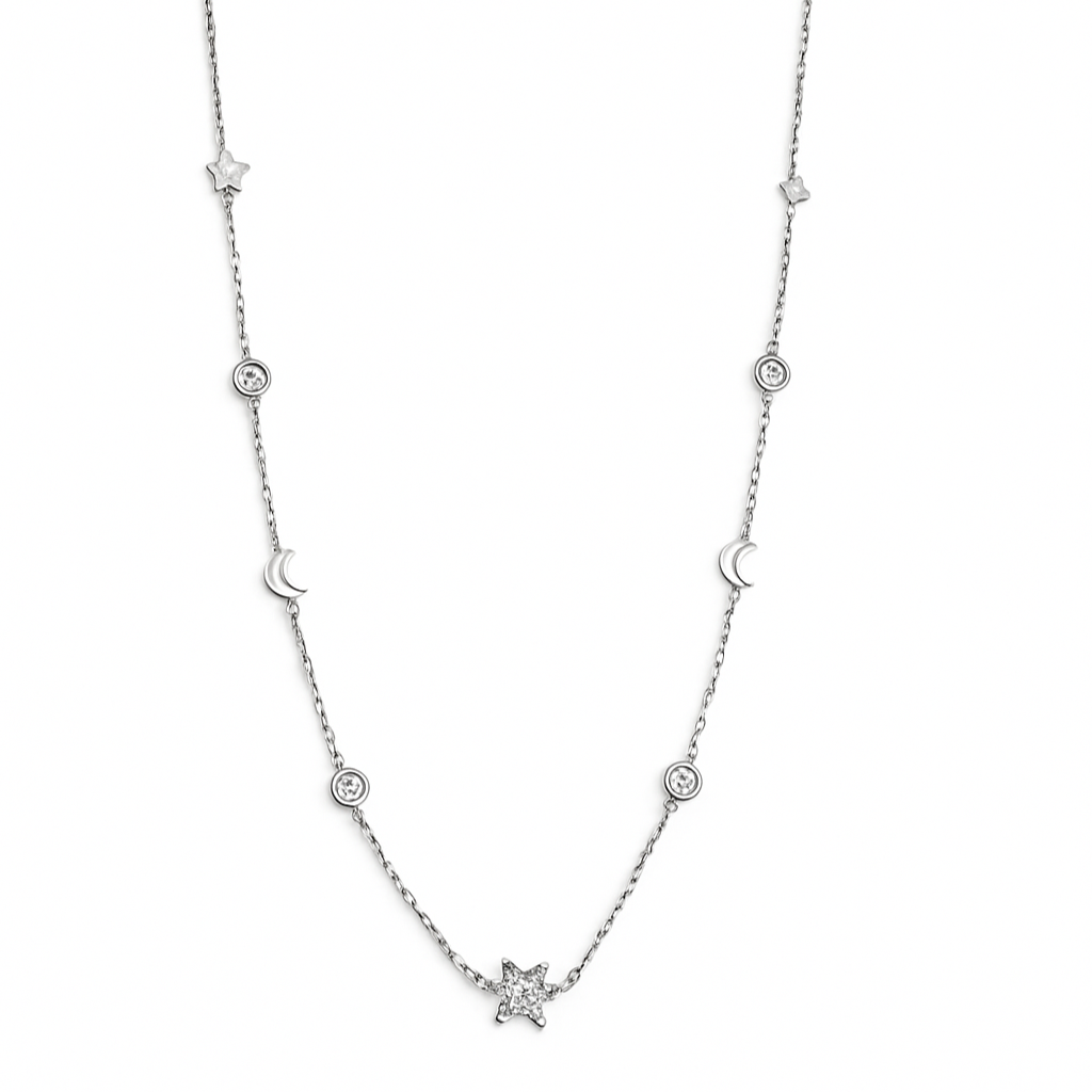 Collana base catena sottile con stelle e zirconi.