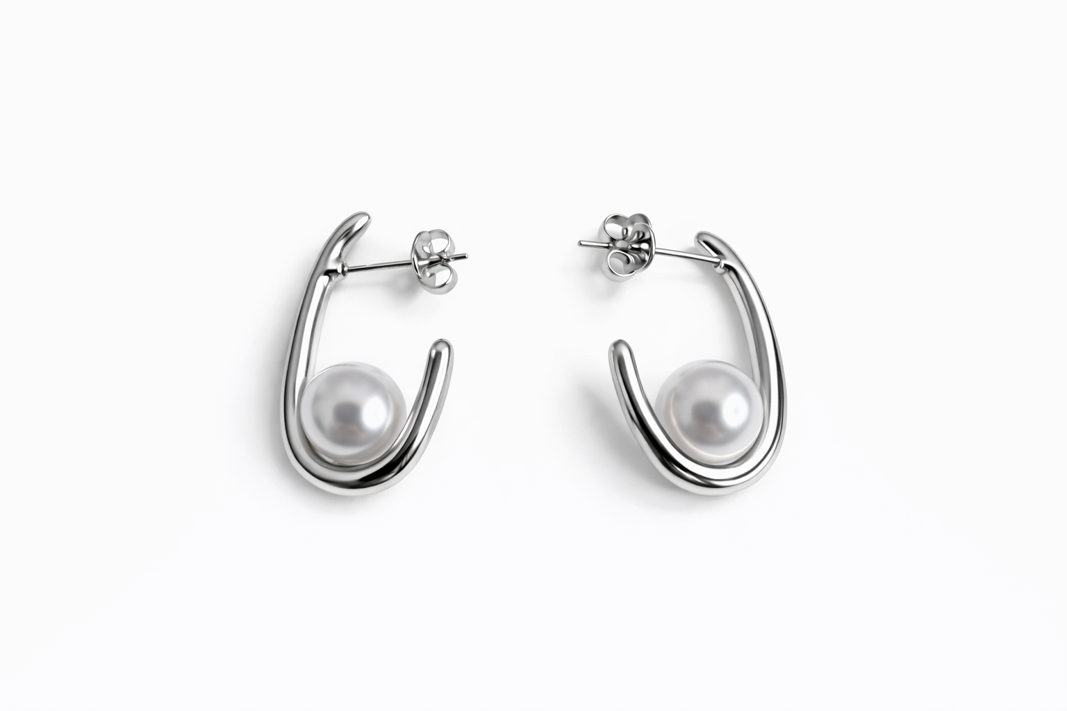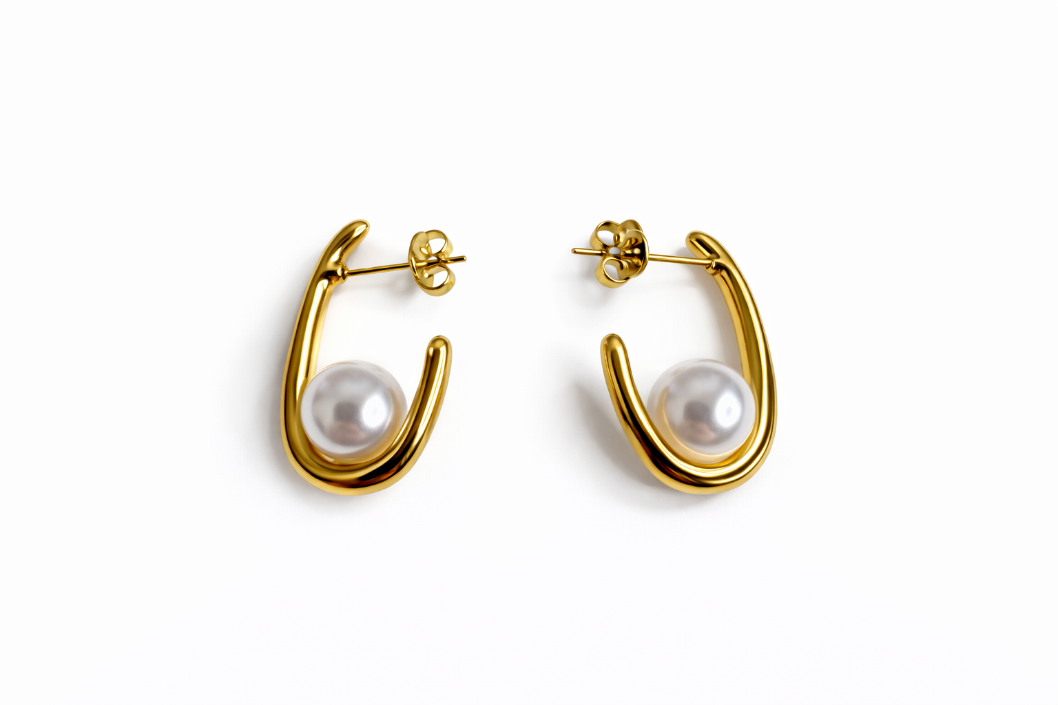 Orecchini a cerchio aperto con chiusura a farfalla e perla interna.