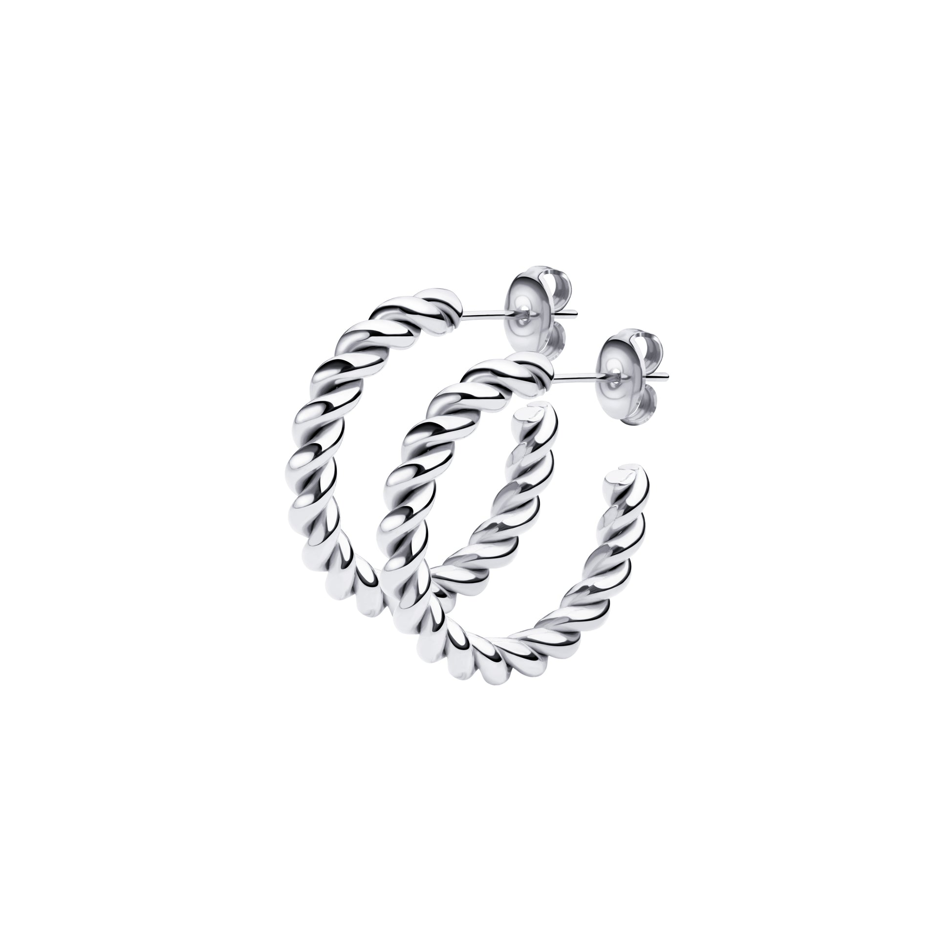 Orecchini con chiusura a farfalla,tondi intrecciati.