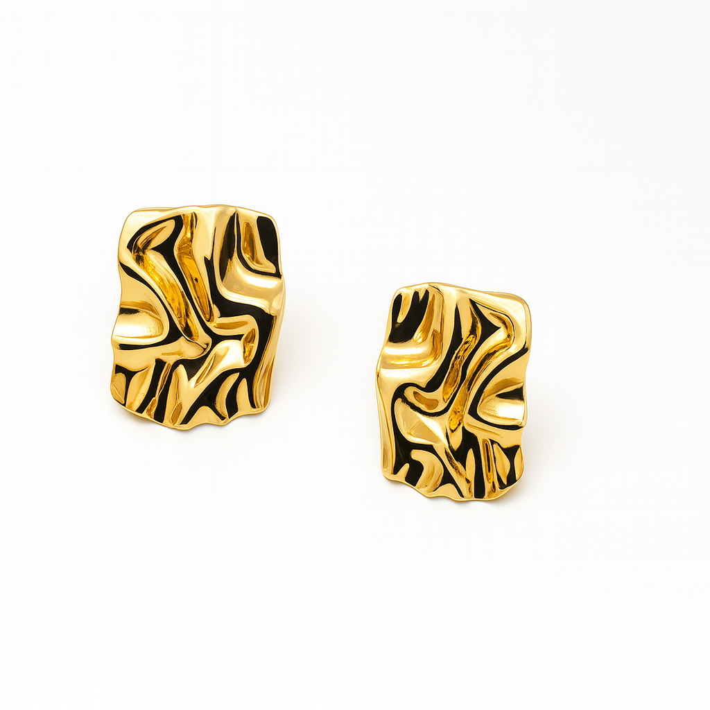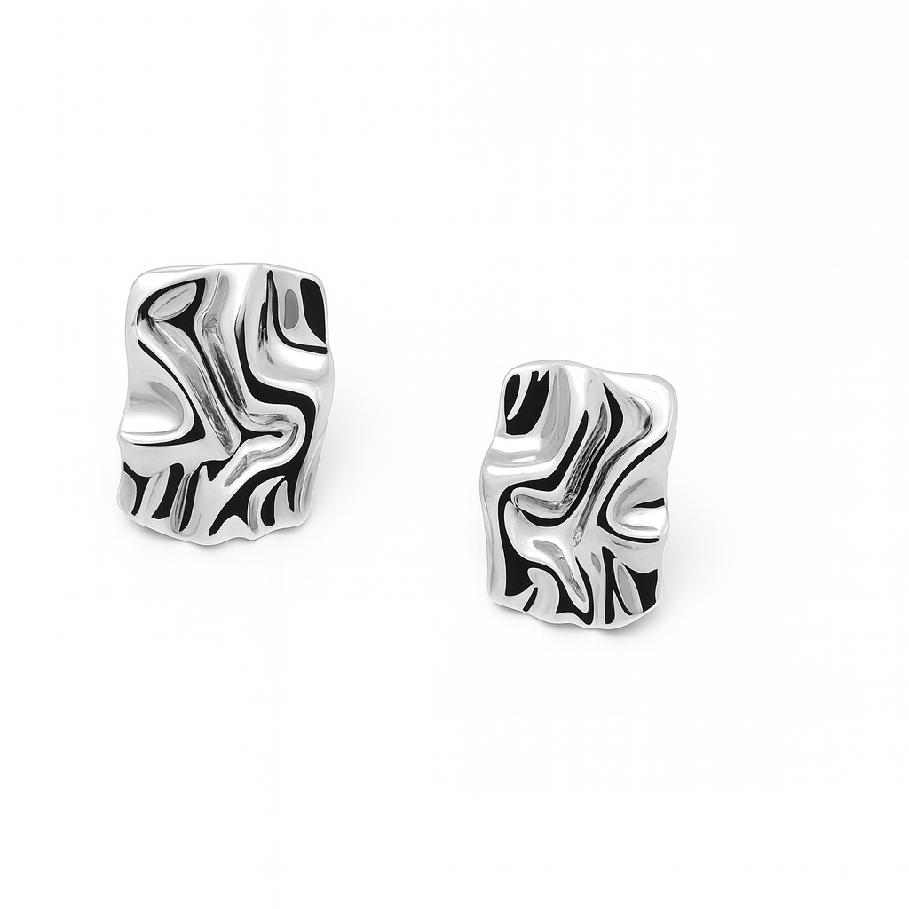 Orecchini con chiusura a farfalla stile stropicciato e forma rettangolo