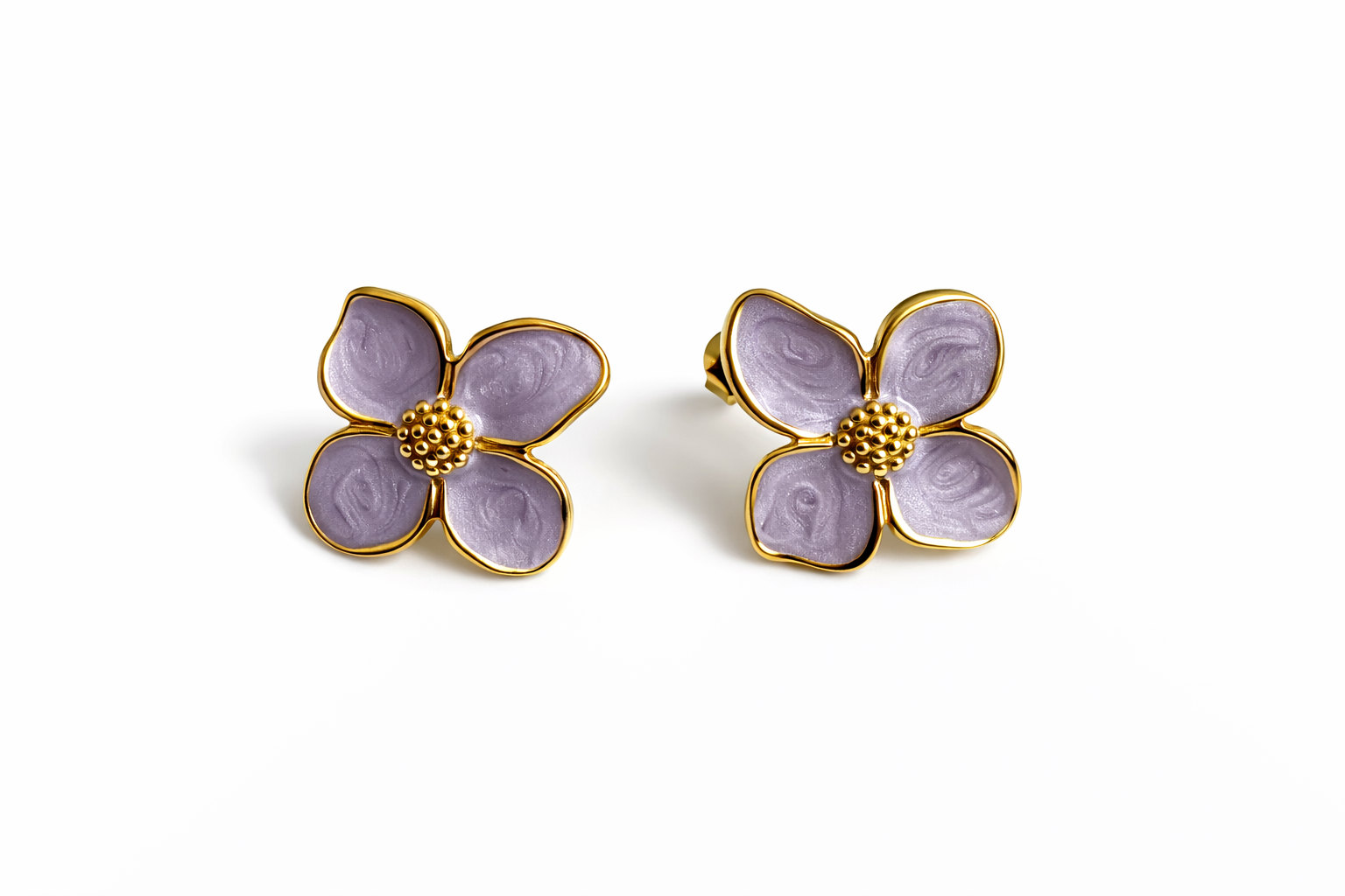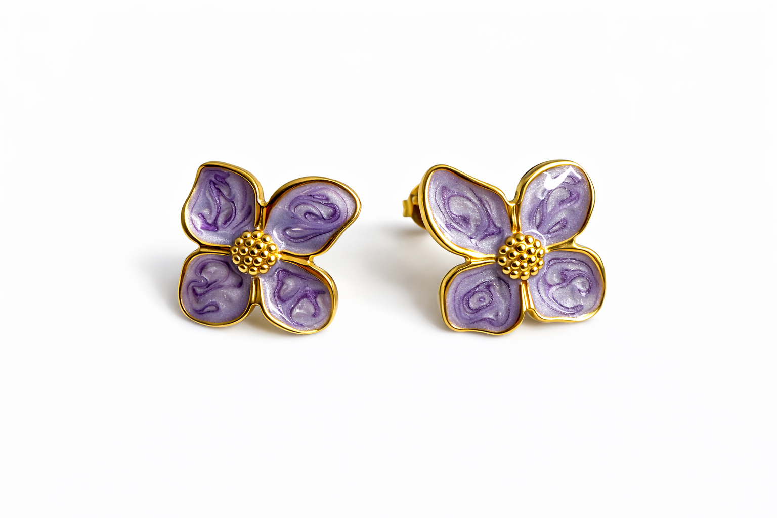 Orecchini con chiusura a farfalla, a forma di fiore smaltato
