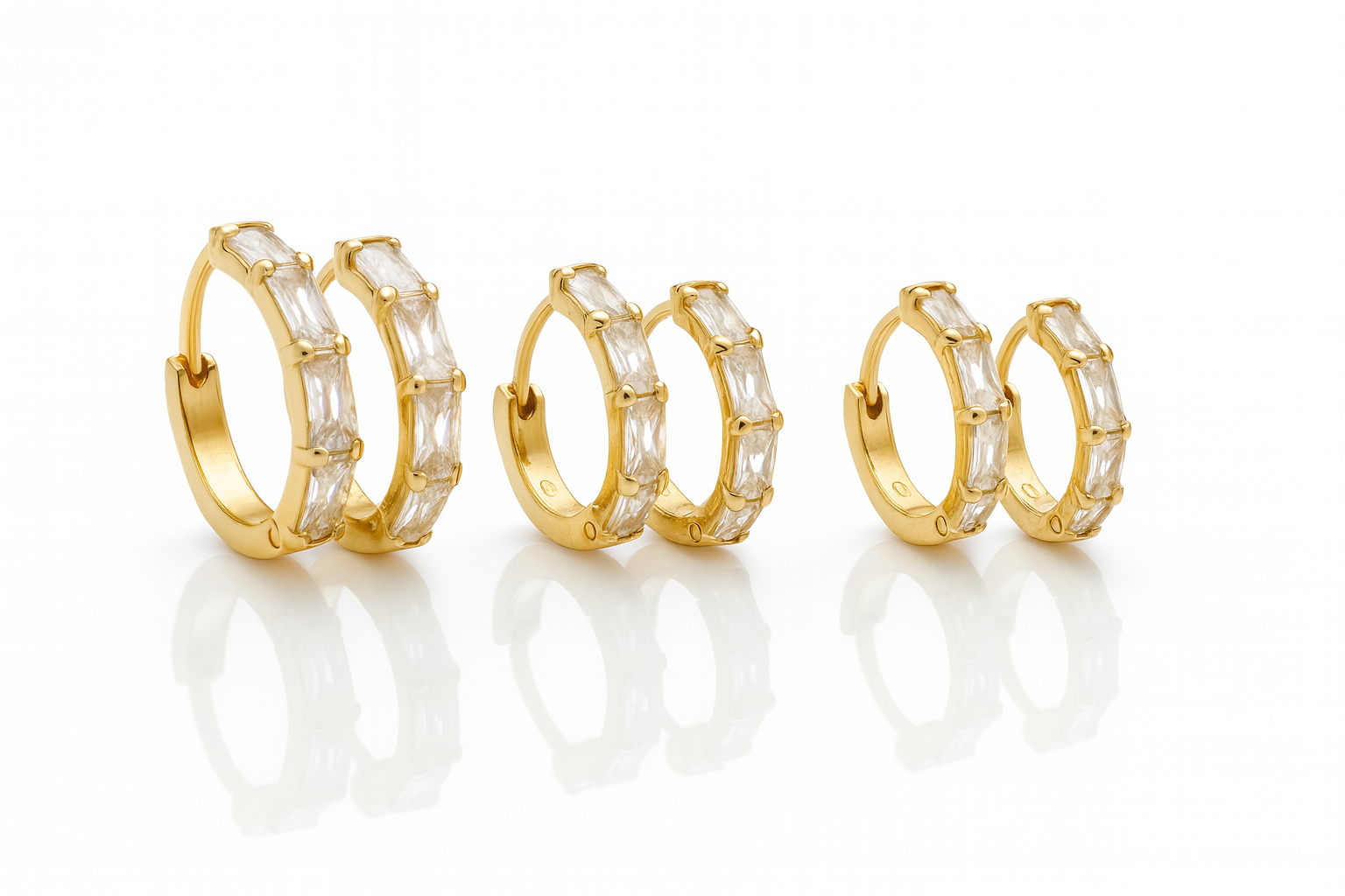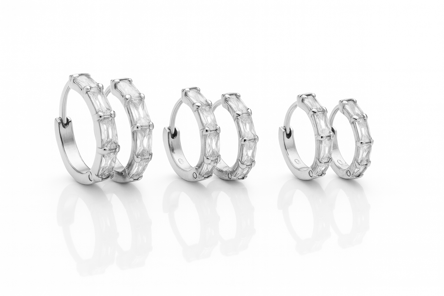Set di orecchini con chiusura a scatto, 3 coppie a scalare.