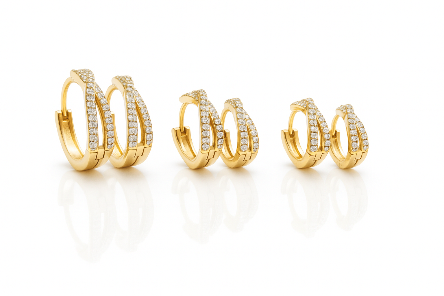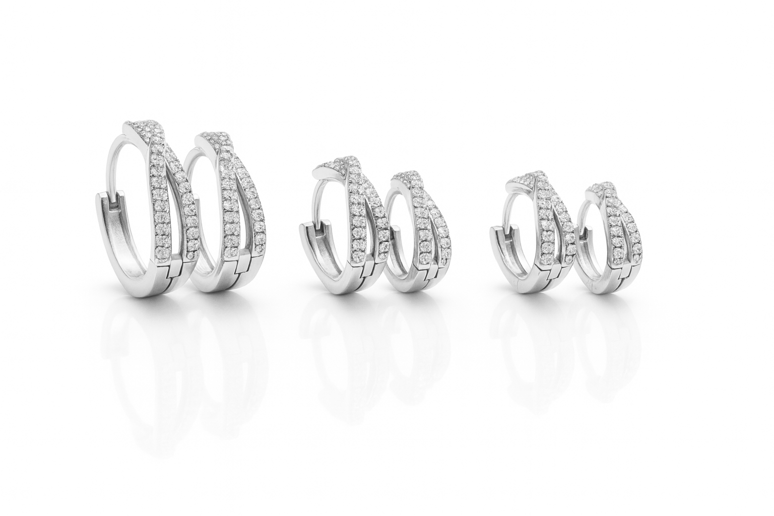 Set di orecchini con chiusura a scatto, 3 coppie a scalare.